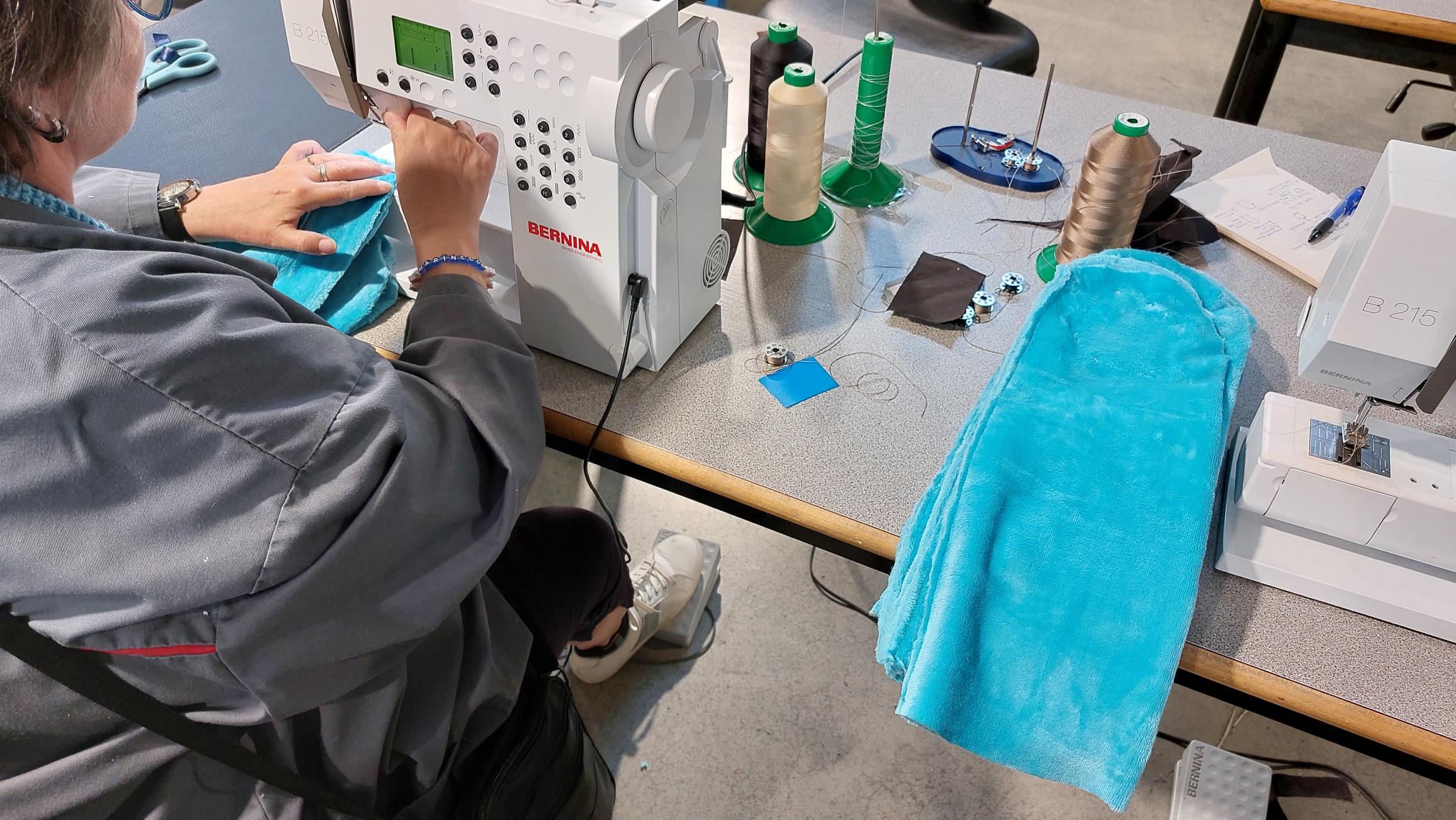 Julia LEMAIRE, la monitrice de l’atelier, a mis en place des mini chaines de production pour assurer les différentes étapes de confection.